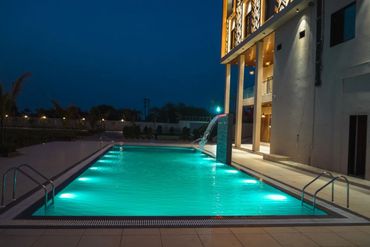 Indulge in luxury at our meticulously designed swimming pool. A tranquil oasis surrounded by lush greenery, offering a perfect blend of serenity and sophistication.